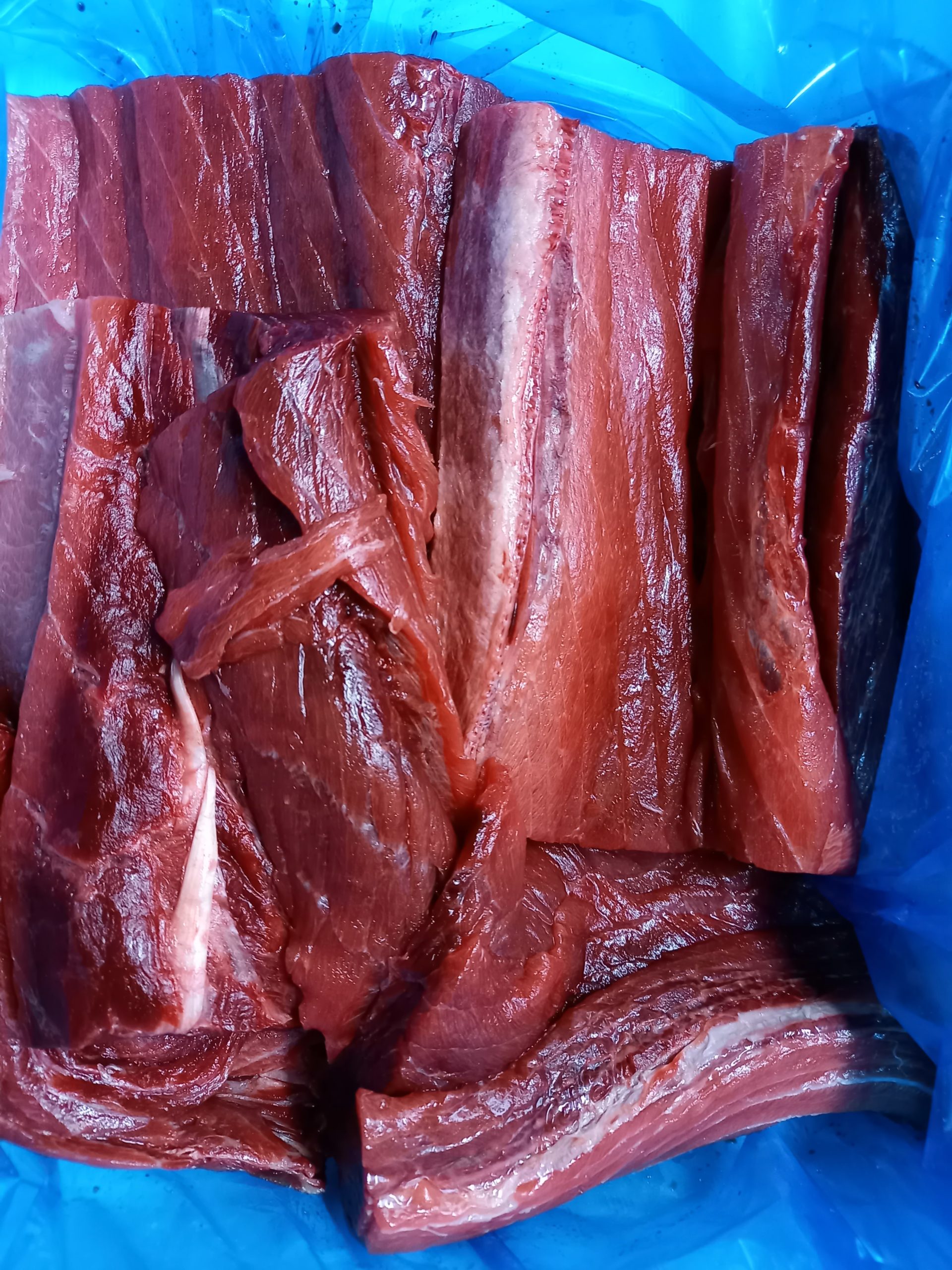 大間のまぐろの血合い部分を丁寧に血抜きし、しっかりボイルした後乾燥しました。